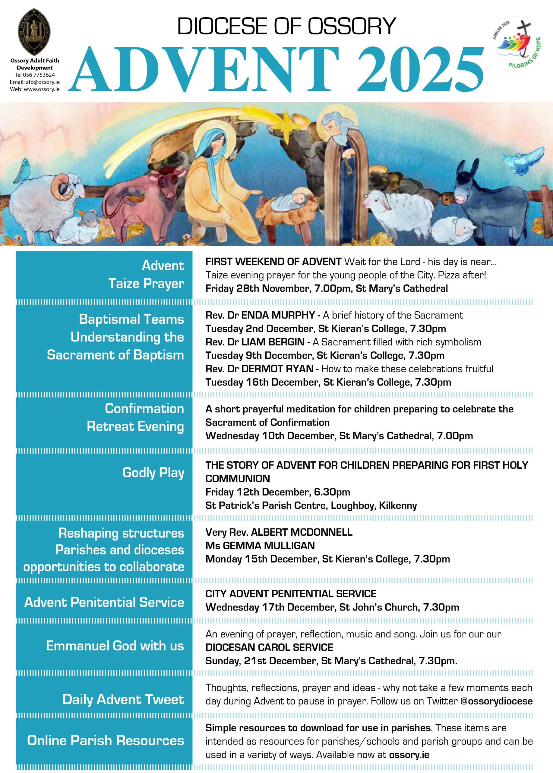 The full programme of offerings from Adult Faith Development Group for the Diocese and Parishes for Advent